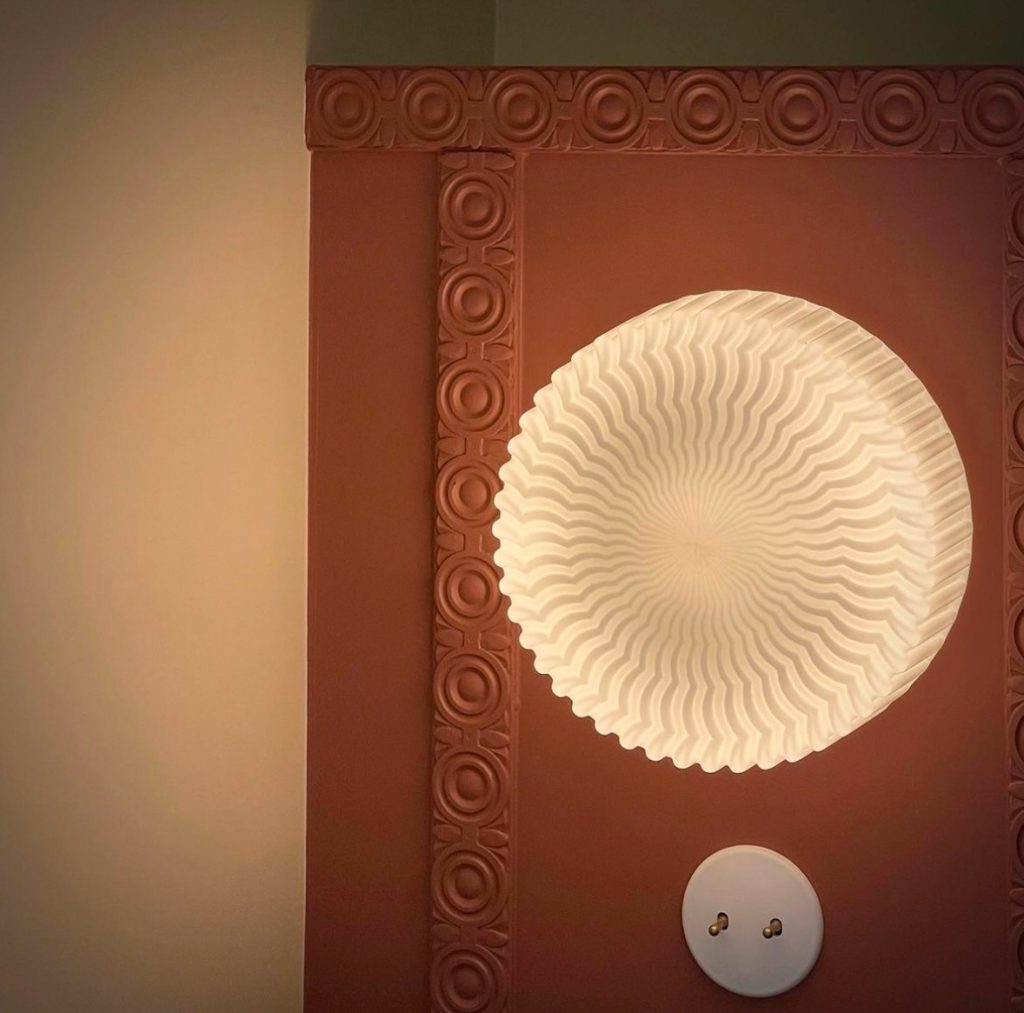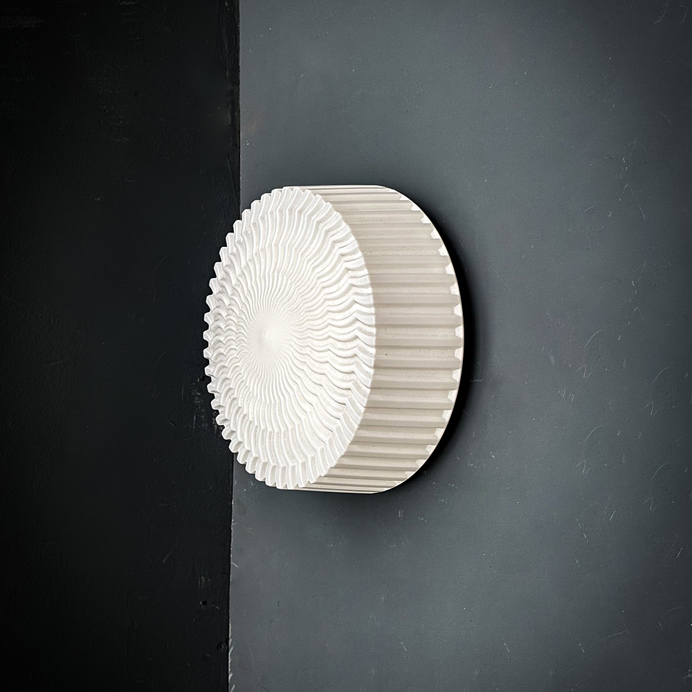 Applique ou plafonnier en verre blanc lisse, motif d’ondulations concentriques.